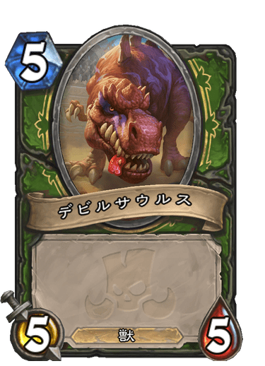 ちなみに、デビルサウルスという名前のトークンはこれと卵の他「ティンクマスター・オーバースパーク」からも登場しますが、いずれも絵は違います。トークンミニオンの場合は絵が使いまわされる場合も多いですが、デビルサウルスは召喚元のカードによって全て異なる絵が使われています。