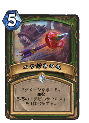 答えは天下一ヴドゥ祭の「エサ付きの矢」でした。「デスマッチ・パビリオン」などに比べると多少使われていたカードではあるので、分かった方も多いかもしれません。