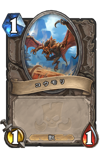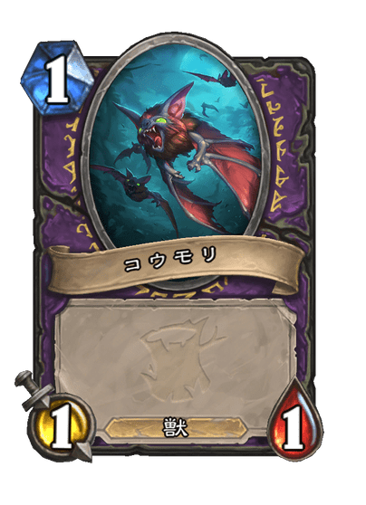 コウモリを召喚するカードは他にもハンターとウォーロックに存在し、それぞれ絵も違います。こちらはウォーロックの「逢魔コウモリ」が召喚するコウモリです。私は盲目のレンジャーはほとんど使っていなかったのですが、逢魔コウモリはよく使っていたのでこちらの方が馴染みがあります。